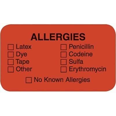 Allergy Warning Medical Labels Allergies 0.875 x 1